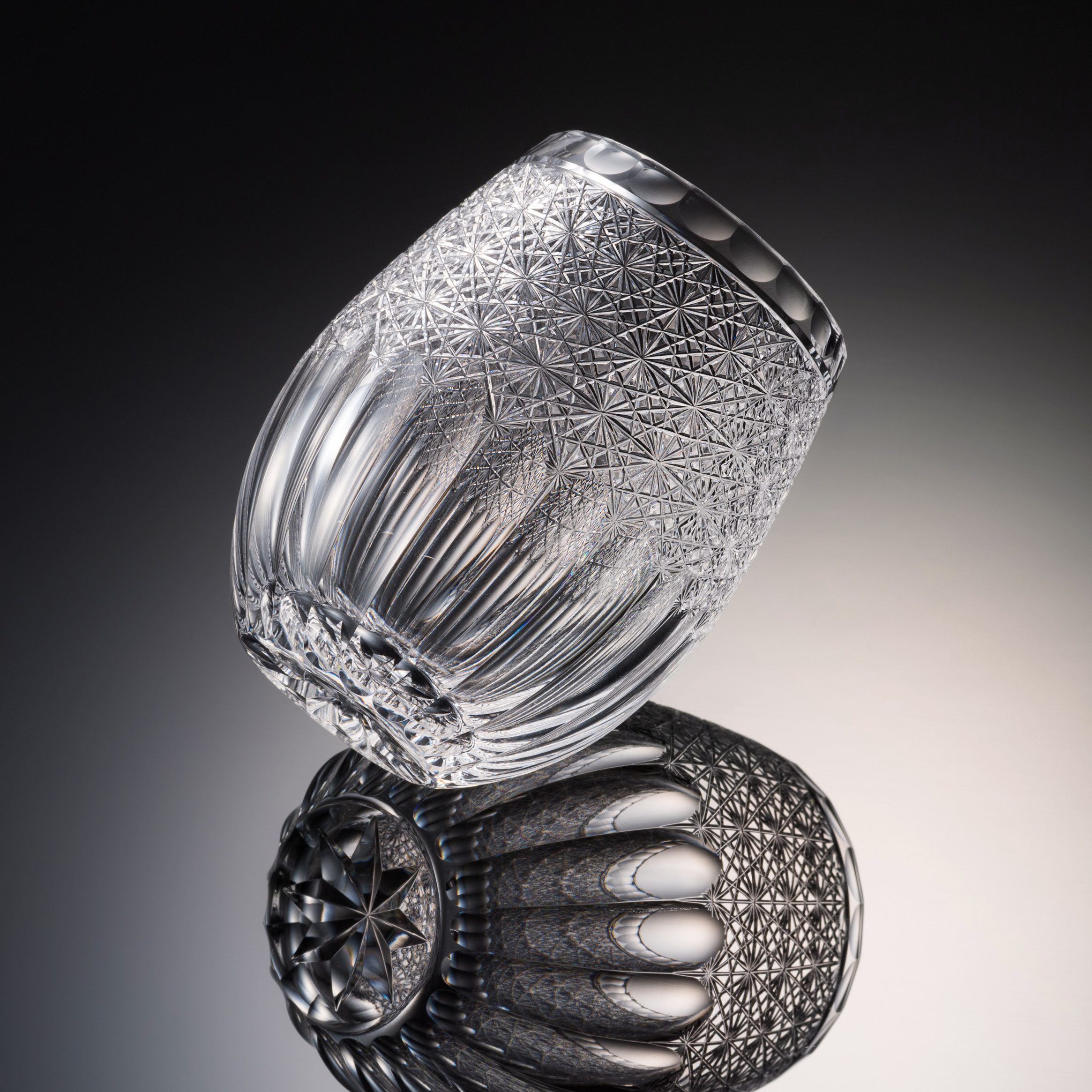 ■創業100年を超える深川硝子工芸は、 多くの切子工房にガラス生地の供給を行っていることでも知られ、 名立たる江戸切子職人達が絶大な信頼を寄せる硝子メーカー。 宝石級の煌めきを放つこの美しいワイングラスは、 日本最高峰と謳われる同社が手掛けた上質なクリスタル硝子に、 江戸切子界の巨星・篠崎英明氏が代名詞である「菊繋ぎ」のカットをたっぷりと贅沢に施した逸品。 男女ともに持ちやすいサイズ設計で、 足のないバルーン型のグラスは、 倒れにくい・洗いやすいなど実用面でのメリットもある。 和のテーブルに映える万能グラスで、 おうちでの食卓をさらに華やかに演出してくれる。