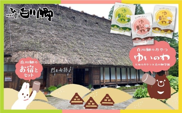 また、お菓子とともに白川郷をより楽しんでもらいたいと、白川郷の宿泊施設に泊まれる宿泊券とのセットになっています。