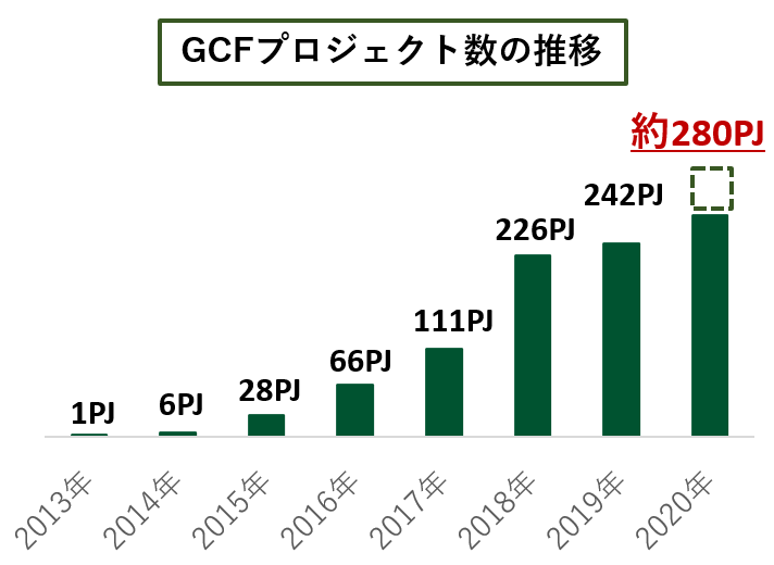 GCFプロジェクト数の推移(注:2020年は1月1日~11月2日までの数字)