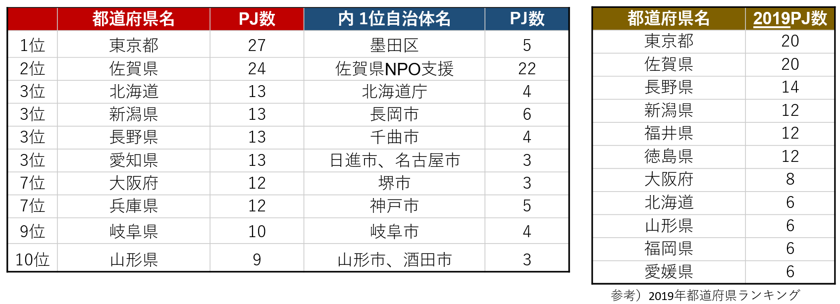 期間:2020年1月1日~11月2日時点/「1位自治体」は各都道府県内でPJを最も実施した自治体