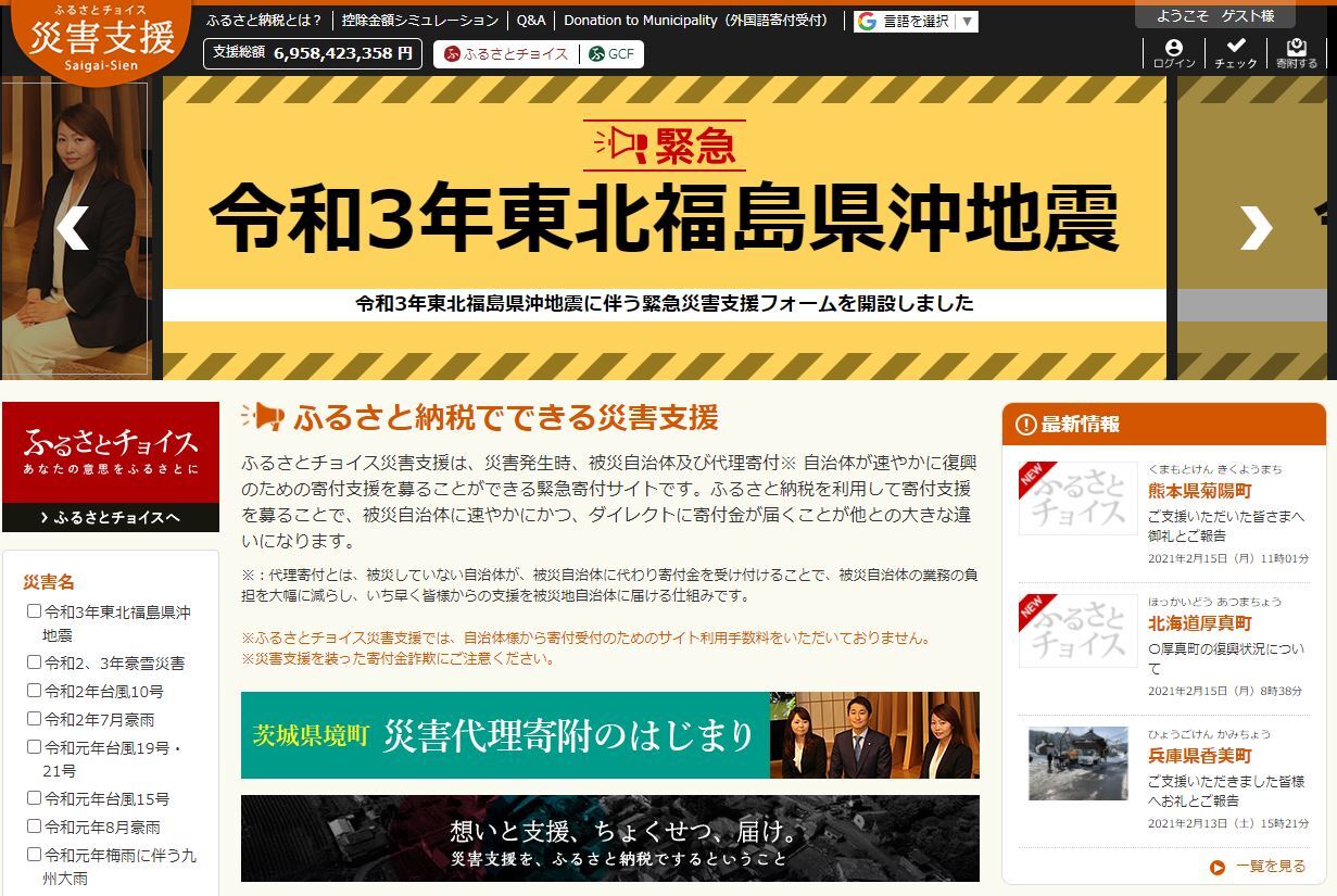 「ふるさとチョイス災害支援」サイト