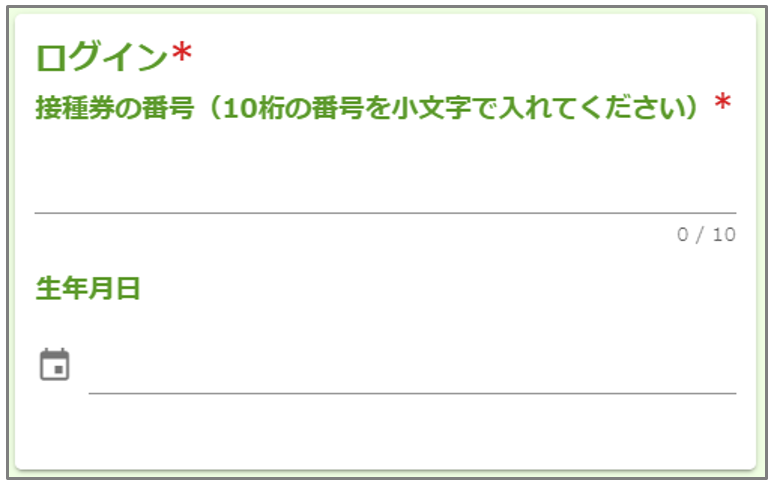 住民側の予約フォーム画面例(接種券番号・生年月日で対象者を自動判定)
