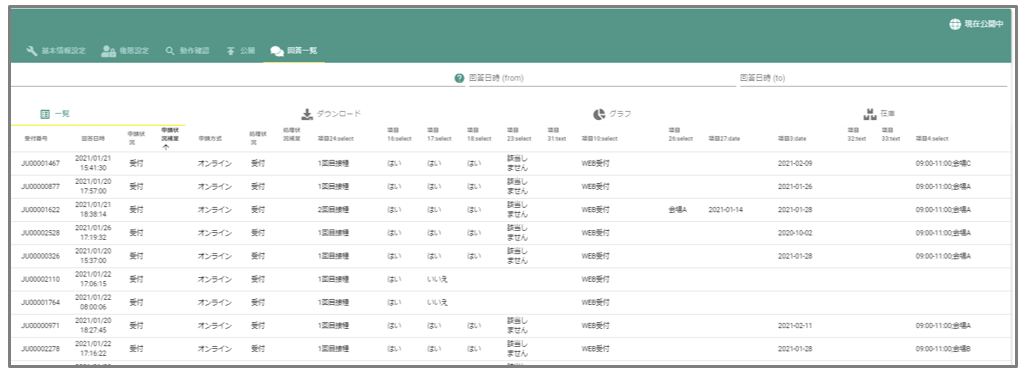 ・ データ一覧 :予約データがリアルタイムに一覧表示