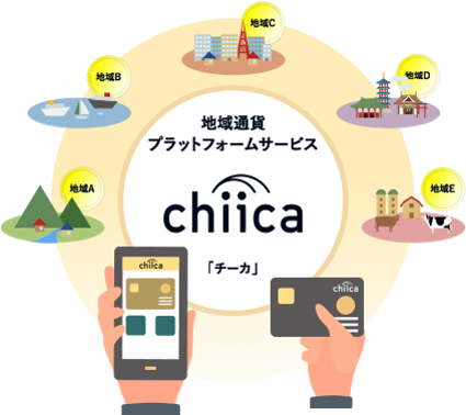 2019年5月よりサービスを開始した「chiica」は地域内経済循環、地域課題の解決策として地域独自のデジタル通貨を発行し、運用可能な全国統一のプラットフォームサービスです。「chiica」では、地域別に通貨の発行や加盟店登録、売上・払込管理ができます。スマートフォンアプリと、スマートフォンが苦手な方でも利用できるカードの2種類のタイプがあり、併用も可能です。現在、全国27自治体が導入しています。