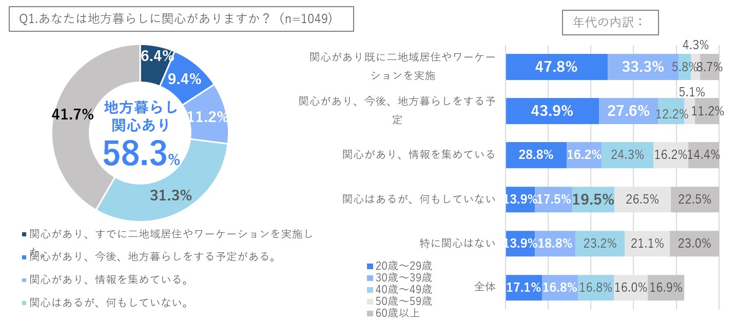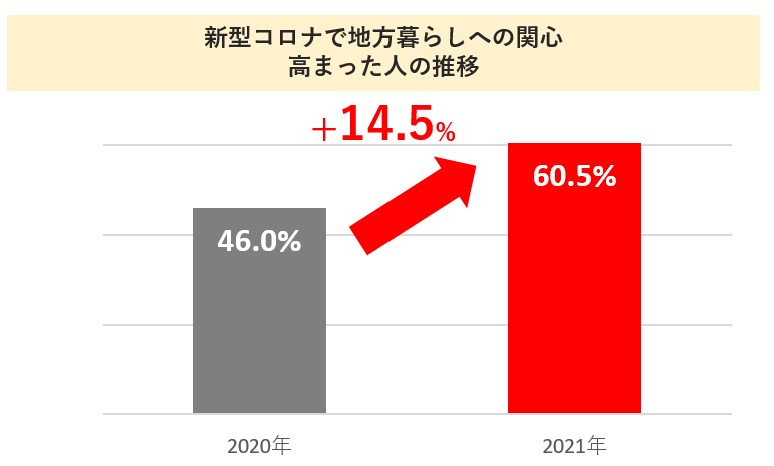 1)58.3%が地方暮らしに「関心あり」60.5%は新型コロナで関心高まる、ともに前年比増加