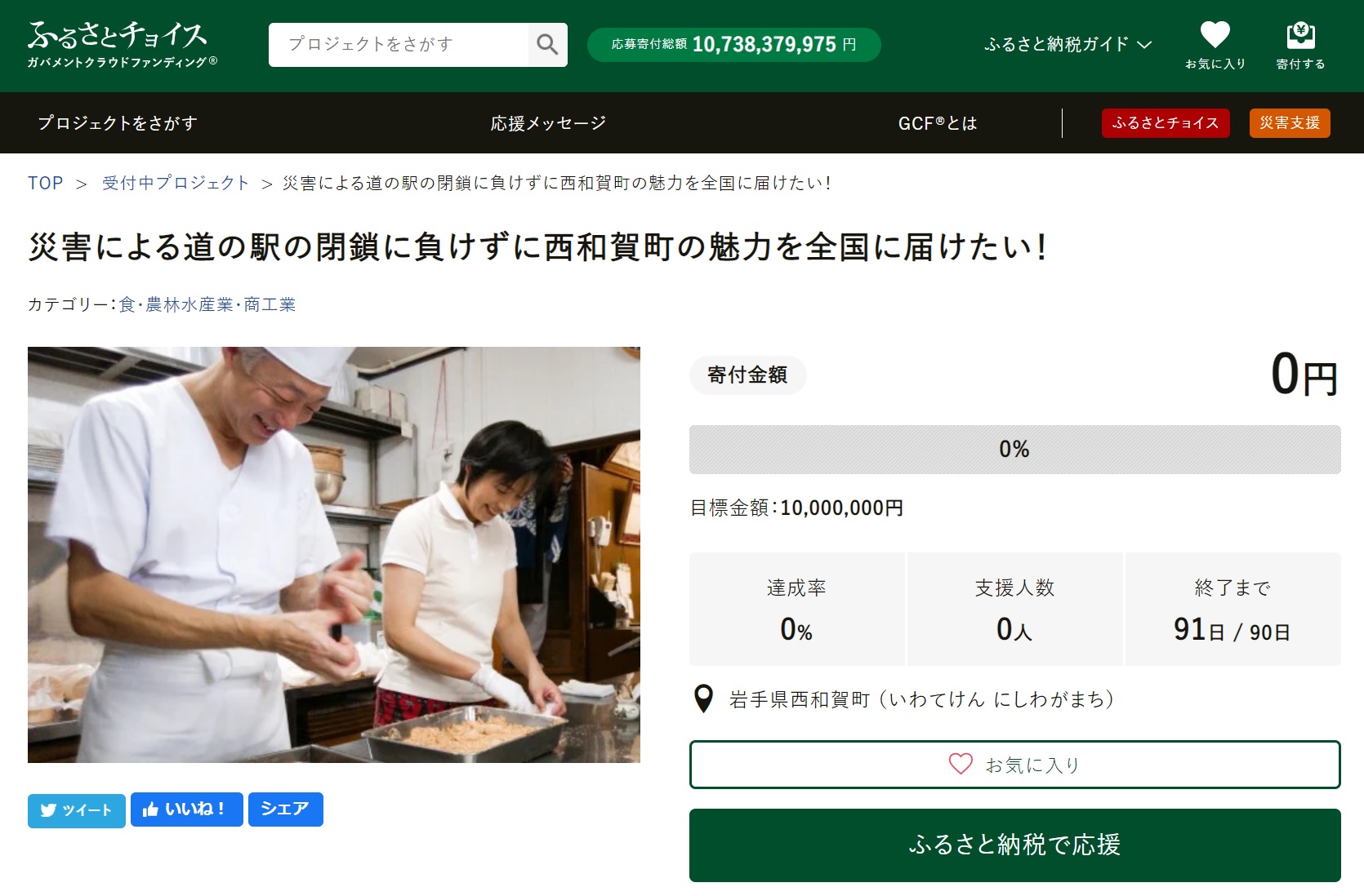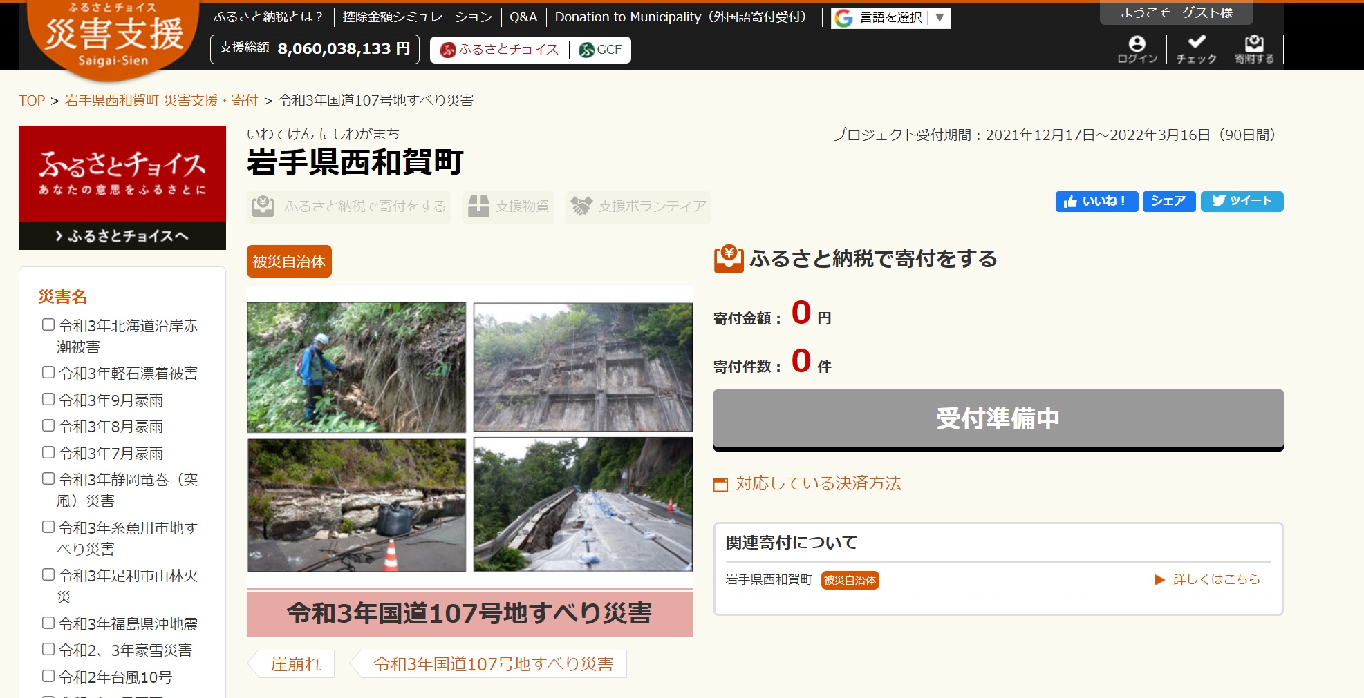 岩手県西和賀町とふるさと納税総合サイト「ふるさとチョイス」(https://www.furusato-tax.jp/)を企画・運営する、株式会社トラストバンク(本社:東京都渋谷区、代表取締役:川村憲一、以下「トラストバンク」)は、本日12月17日、地滑りによる国道の通行止めで孤立し、閉鎖を余儀なくされた道の駅「錦秋湖」の事業者を支援するため、トラストバンクが提供する、ふるさと納税で被災自治体の災害支援に寄付できる仕組み「ふるさとチョイス災害支援」及び、ふるさと納税制度を通じてクラウドファンディング型で寄付を募る仕組み「ガバメントクラウドファンディング®」(以下「GCF」)の2つの仕組みを活用した寄付の受付を開始します。