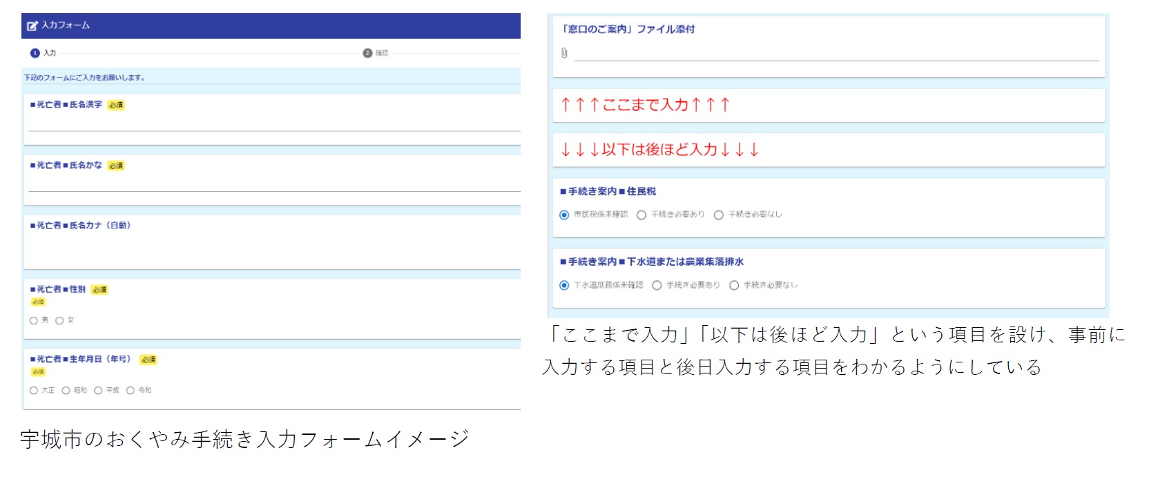 ・ご遺族が来庁するまでに市がLoGoフォームを使って事前に情報を入力し、手続きにかかる負担を軽減。