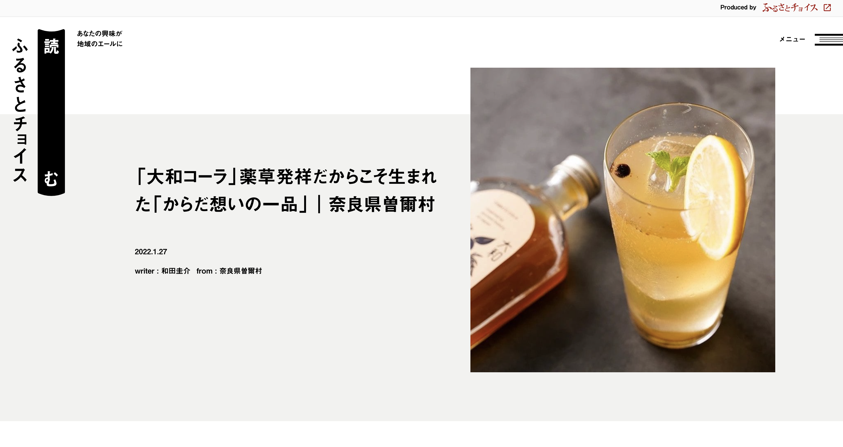 〇「大和コーラ」薬草発祥だからこそ生まれた「からだ想いの一品」(奈良県曽爾村)