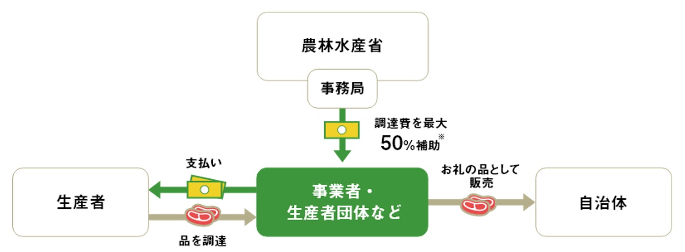 ニコニコエール品 寅」では、 参画する事業者や生産者団体などが農林水産省の補助事業(注 1)を活用することで、 生産者から商品を仕入れる際の調達費を抑えることができます。 そのため、 期間限定で特別な寄付額や容量のふるさと納税のお礼の品が提供されます。 新型コロナウイルス感染症の影響により販路を失い、 多くの特産品が売れずに在庫として残っていることが生産者の負担になっている中、 本プロジェクトを通じて、 特産品の流通量の促進だけでなく、 新たな販路の開拓や開拓した販路の定着につなげることで全国の事業者や生産者の支援につなげます。
