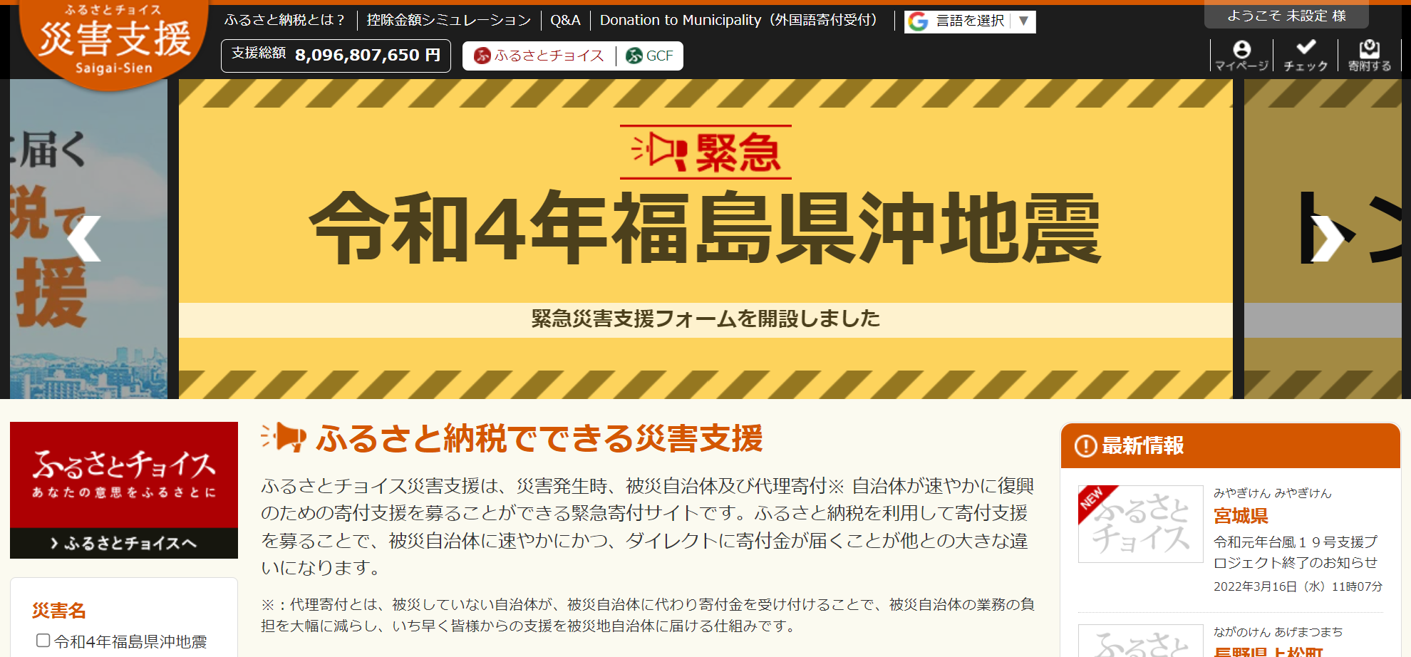 トラストバンクは3月17日11時50分に、「ふるさとチョイス災害支援」で令和4年福島県沖地震による被災自治体を支援するため「災害時緊急寄付申込みフォーム」を開設しました。3月17日16時02分現在、福島県桑折市、福島市、宮城県登米市、そして宮城県山元町と角田市の代理寄付として兵庫県朝来市が寄付を受け付けています。