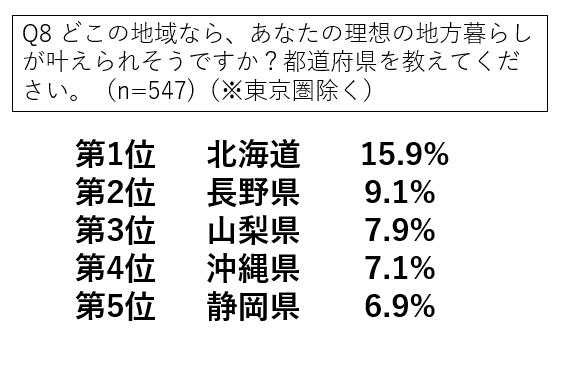 3)理想の移住先1位は北海道。2位以降は都心からのアクセスが良い地域に人気が分散