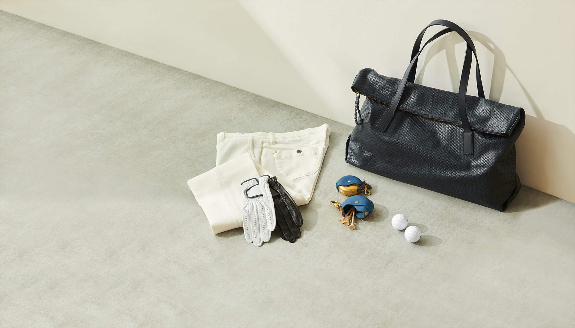 ■選び抜かれた至高の素材、 その魅力を引き出すシンプルで使い勝手のよいデザイン、 それを形にする熟練の職人仕事…。 日本を代表するマニュファクチャーファクトリー「二宮五郎商店」は、 1946年の創業以来、 職人の街として知られる東京都墨田区で妥協なきものづくりを続けてきた。 2019年に初登場した二宮のオリジナルレザー「アジログレイン」は、 完成に至るまで幾度も試作を繰り返し、 日本伝統の「網代編み」を型押しで表現した唯一無二のレザー。 このアジログレインのボストントートは、 くったり・ゆったりとした絶妙なこなれ感で、 ラウンド時の相棒として持ち歩きたい逸品。