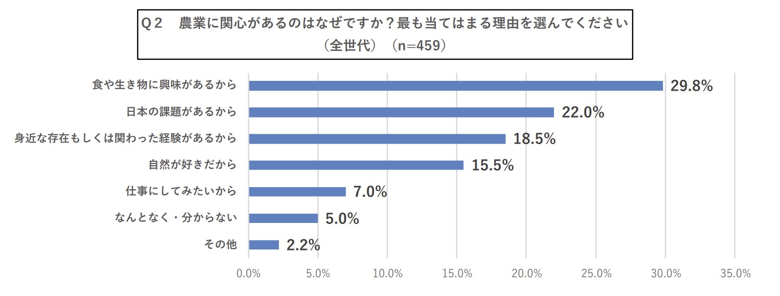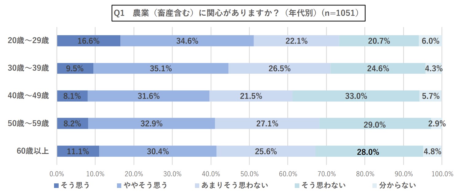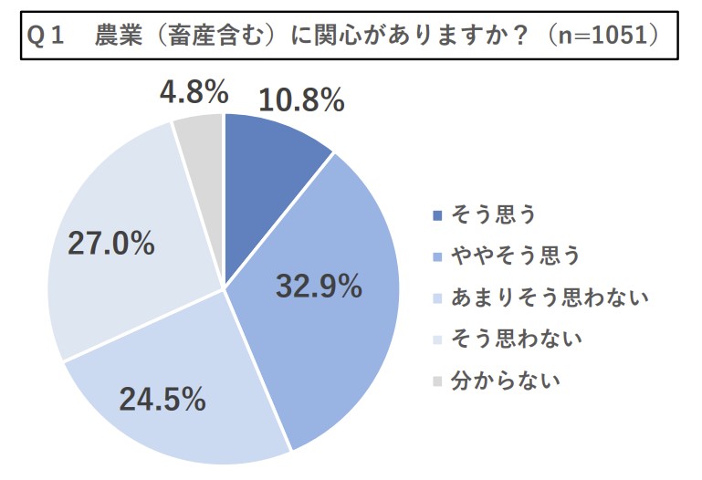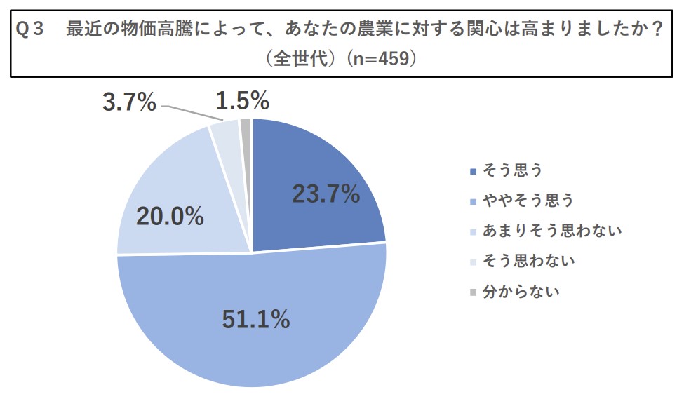 今回の調査では、昨今の世界・社会情勢を念頭に、農業への関心の有無や、物価高騰が農業への関心に与えた影響、日本の食料自給率に対する課題意識などが明らかになりました。