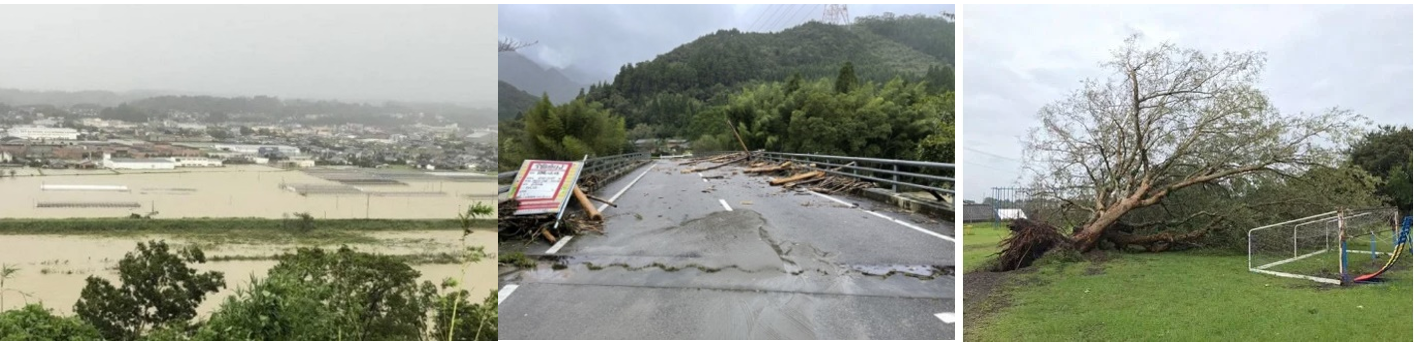 左から:宮崎県西都市、日向市、鹿児島県大崎町の被害状況