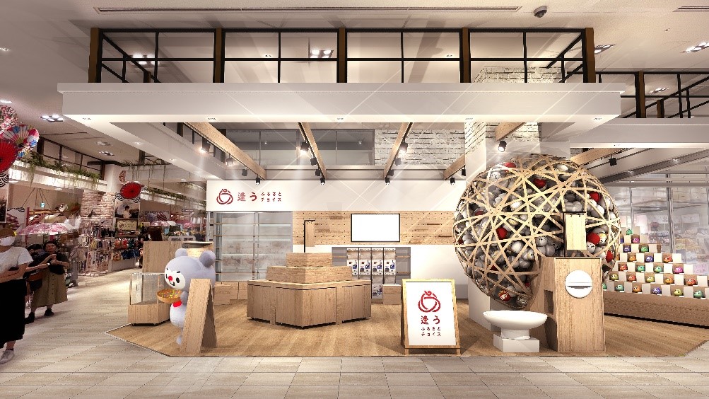 店舗には、47都道府県の名産品がデザインされただるまが出てくる「逢うだるまガチャ」を常設します。店舗中央にある巨大なガチャをまわすと47都道府県のだるまが出てきて、店舗内にある受付でだるまと地域の魅力的な商品と交換することができます。また、地域の特産品などをテーマにしたミニチュアフィギア16種類の「地域ガチャ」も設置します。来場者には、「地域ガチャ」を通じて、思いがけない地域の魅力を発見する機会を提供します。(注)