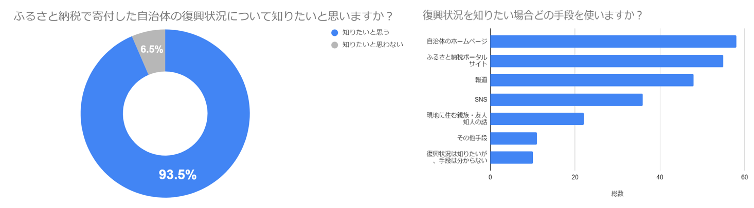 ◆ ふるさと納税での災害支援の寄付復興状況について知りたいと思う人は約9割。災害支援寄付が地域への継続的な関心のきっかけになっている。