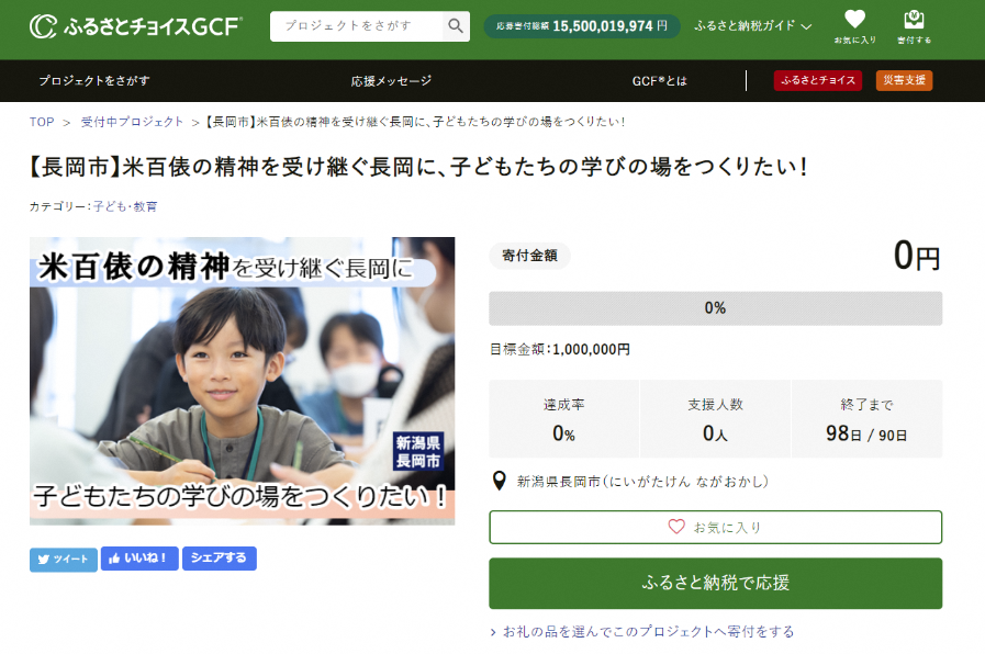 ◆ プロジェクト名: 【長岡市】米百俵の精神を受け継ぐ長岡に、子どもたちの学びの場をつくりたい!