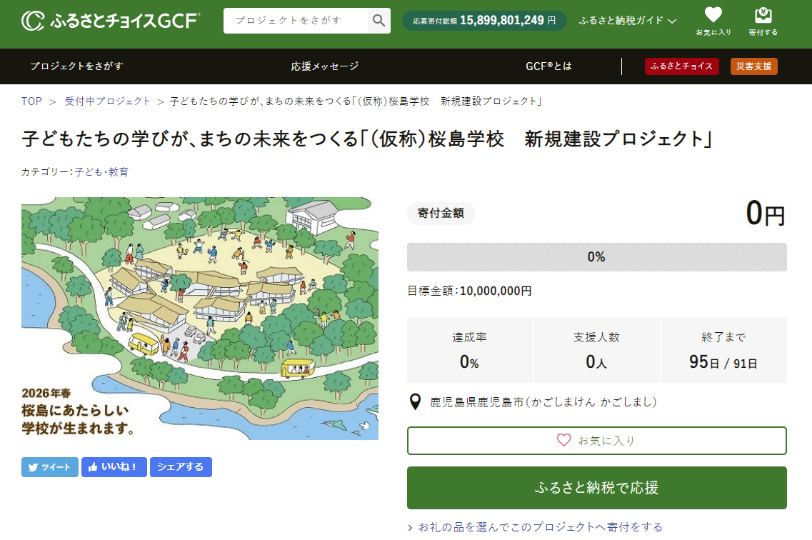 鹿児島県鹿児島市(市長:下鶴 隆央、以下「鹿児島市」)と国内最大級のふるさと納税総合サイト「ふるさとチョイス」( https://www.furusato-tax.jp/ )を企画・運営する、株式会社トラストバンク(本社:東京都渋谷区、代表取締役:川村憲一、以下「トラストバンク」)は、本日12月1日トラストバンクが提供する、ふるさと納税制度を通じてクラウドファンディング型で寄付を募る仕組み「ガバメントクラウドファンディング®」(以下「GCF®」)で、子育て・子ども教育の拡充を目的とした3プロジェクト同時に開始します。募集期間は2023年12月1日~2024年2月28日で、目標寄付金額はそれぞれ1,000万円です。
