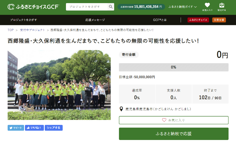 ◆ プロジェクト名: 西郷隆盛・大久保利通を生んだまちで、こどもたちの無限の可能性を応援したい!