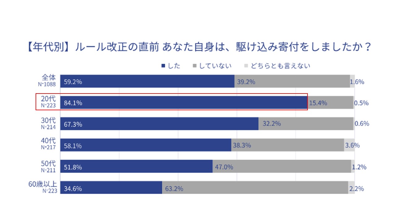 特にSNS等を介した情報に敏感な20代は、寄付行動に社会情勢が強く影響するとともに、「他者を応援する寄付」に対して他世代に比べて積極的であり、今後、地域支援の流れをけん引する存在となっていくと考えられます。