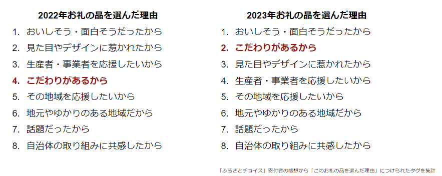 ▲お礼の品にも事業者・生産者の「こだわりがある」ことが重視される傾向