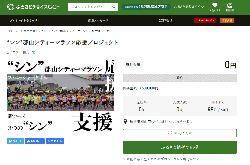 福島県郡山市(市長:品川 萬里)と国内最大級のふるさと納税総合サイト「ふるさとチョイス」( https://www.furusato-tax.jp/ )を企画・運営する、株式会社トラストバンク(本社:東京都渋谷区、代表取締役:川村憲一、以下「トラストバンク」)は、本日12月22日トラストバンクが提供する、ふるさと納税制度を通じてクラウドファンディング型で寄付を募る仕組み「ガバメントクラウドファンディング®」(以下「GCF®」)で、郡山シティーマラソンの開催支援を目的としたプロジェクトを開始します。募集期間は2023年12月22日~2024年2月19日で、目標寄付金額は350万円です。