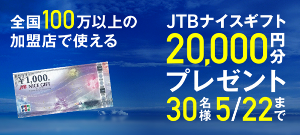 「チョイストラベル」へのリニューアルを記念し、2024年4月23日より「JTBナイスギフト券2万円分」が抽選で30名様に当たるプレゼントキャンペーンを実施いたします。