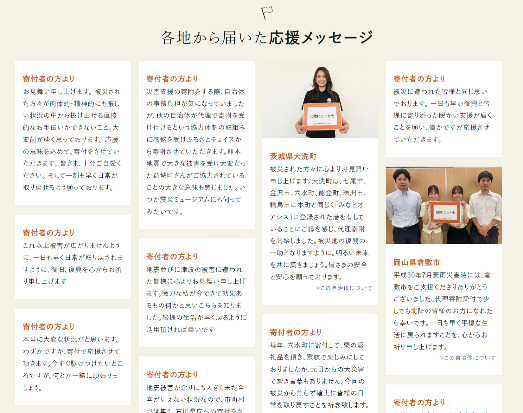 このたび新たに、「ふるさとチョイス災害支援」を通じて寄付者の方々から寄せられたメッセージの一部と、能登半島地震において被災自治体に代わり寄付を受け付けた代理寄付自治体から寄せられたメッセージを取りまとめて「あなたのエールを北陸に」の特集ページで公開することで、改めて北陸への応援の気持ちを形とし、被災地の皆様へエールをお届けします。
