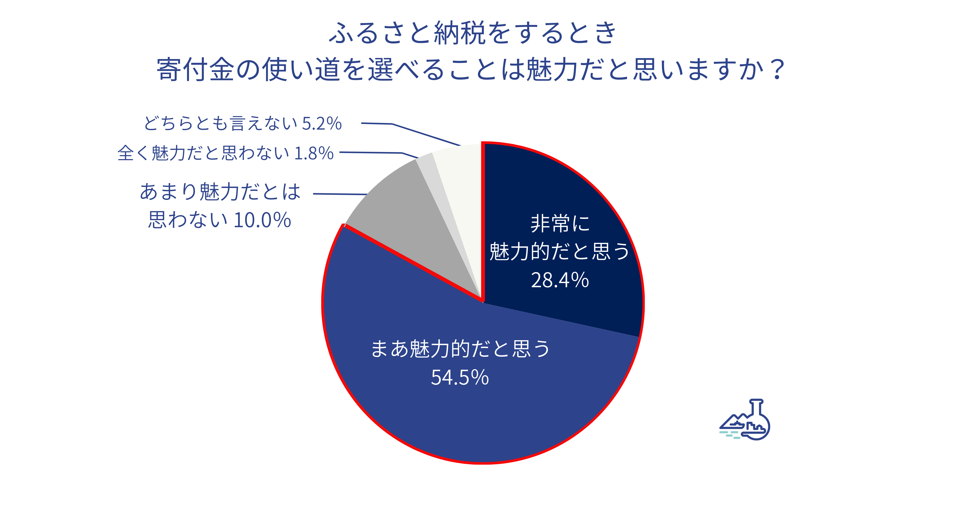 ・ ふるさと納税の寄付金を選べることは「魅力的だと思う」と答えた人は82.9%(「非常に魅力だと思う」+「まあ魅力だと思う」の計)。