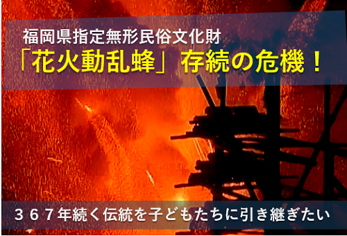 ◆ プロジェクト名: 福岡県指定無形民俗文化財「花火動乱蜂」存続の危機!367年続く伝統を子どもたちに引き継ぎたい(福岡県久留米市×花火動乱蜂保存会)