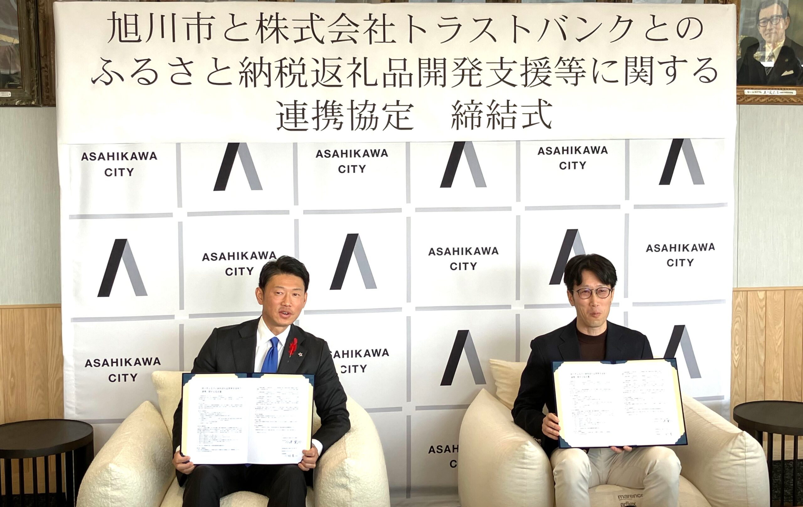 左から旭川市 市長 今津氏、トラストバンク 代表取締役 川村