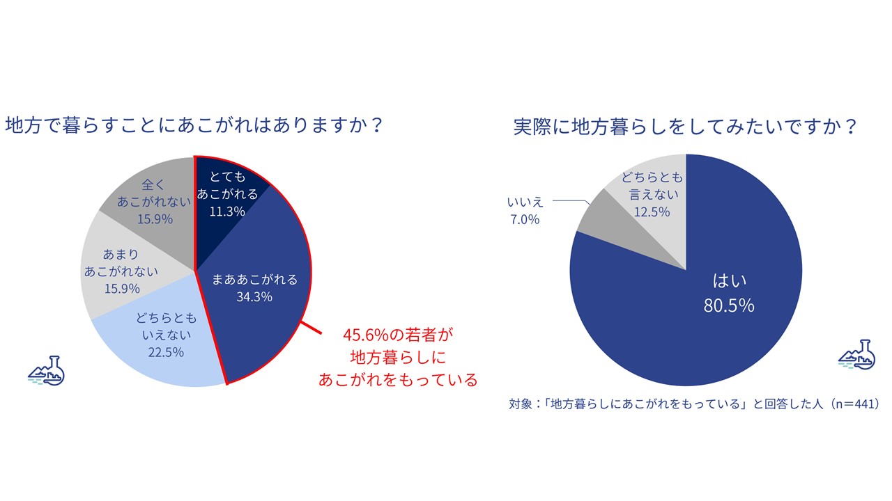 全体では51.0%、地方で暮らすことにあこがれる若者にしぼると76.2%が、「興味がある」と回答した。