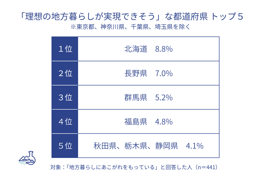 理想の地方暮らしを実現できそうな都道府県のトップは