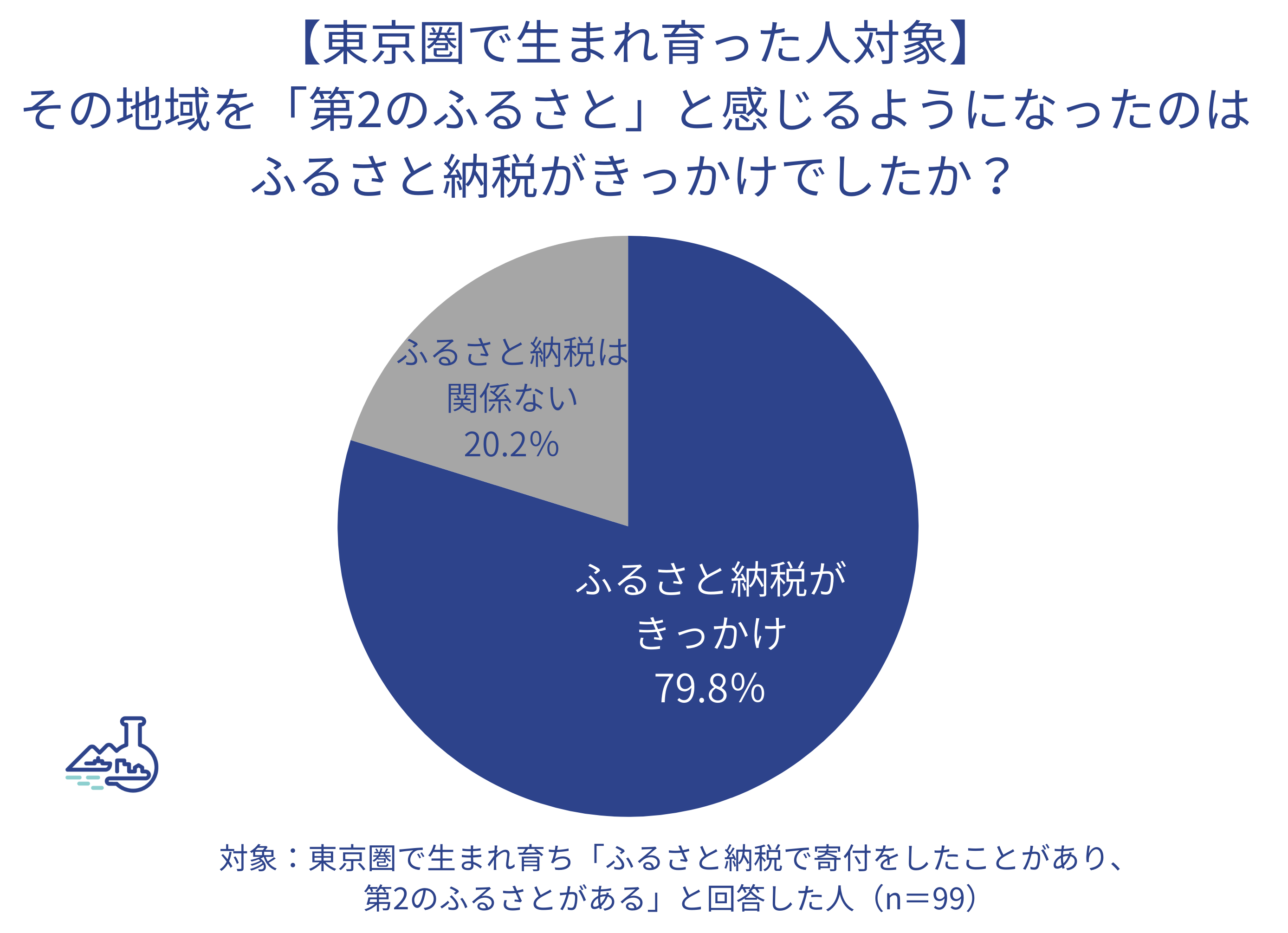 東京圏出身の若者で、ふるさと納税の経験があり、かつ「第2のふるさと」があると答えた人において、約8割が「第2のふるさととの出会いは、ふるさと納税だった」と回答。