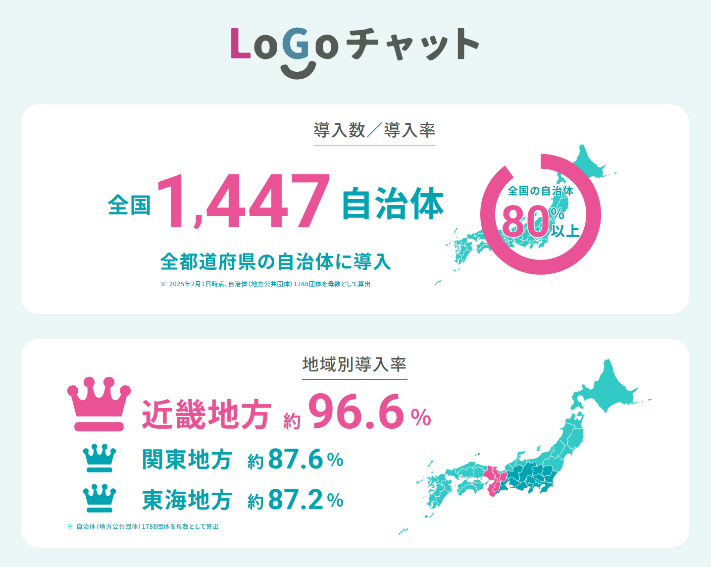 LoGoシリーズは、「地域の発展や課題解決を進めたいが、目の前の仕事で手一杯」という自治体職員の声から生まれました。地域の課題は多く、複雑化する一方で、急速な人口減少により職員数は減少の一途をたどっています。トラストバンクはDXサービスによって、限られた人員で多様な課題解決に取り組む自治体職員を支援するべく、2019年9月に自治体専用ビジネスチャットツール「LoGoチャット」、2020年3月に自治体専用WEBフォーム作成ツール「LoGoフォーム」をリリース。LoGoチャットは現在、全国8割以上、また「LoGoフォーム」は全国4割以上の自治体が利用するまでに利用が拡大しています。