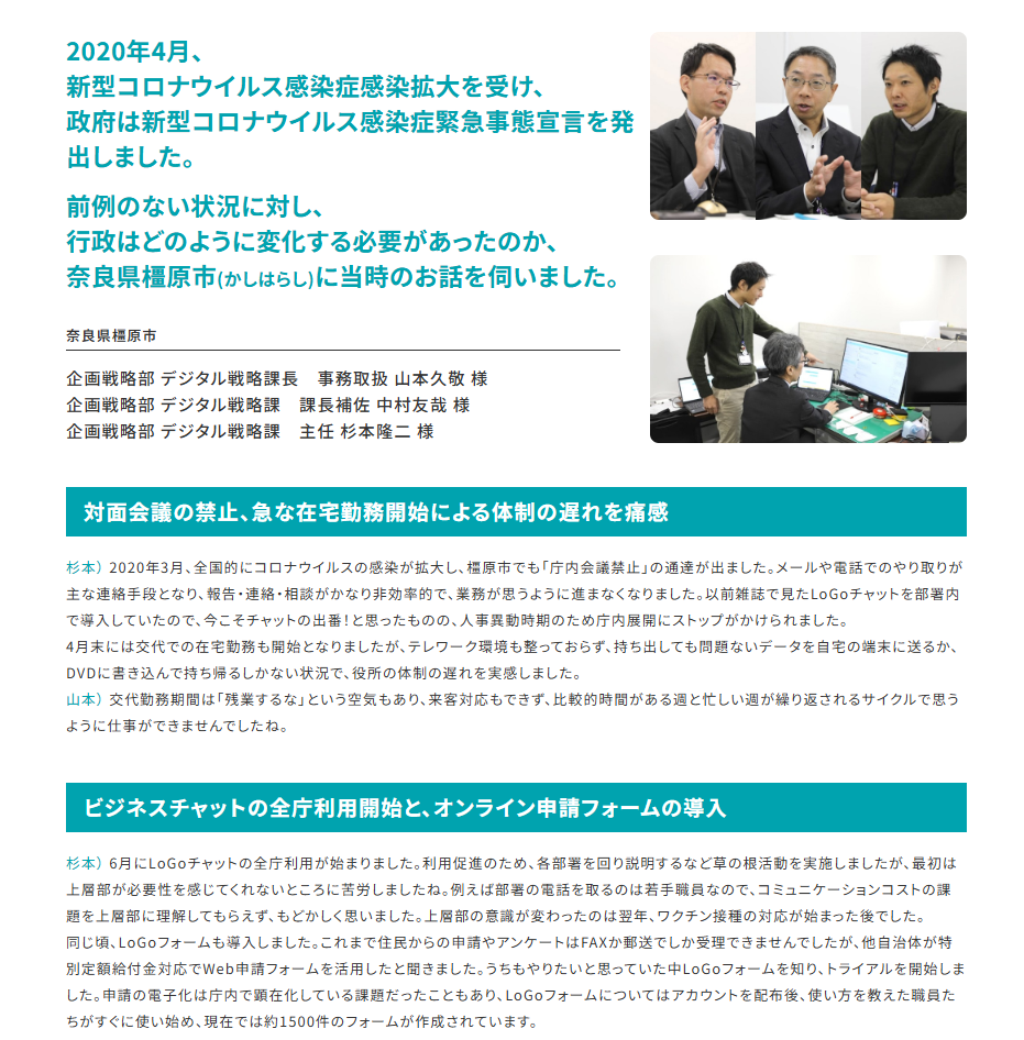 「対面会議の禁止、急な在宅勤務開始による体制の遅れを痛感」奈良県橿原市