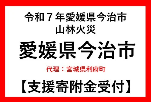 国内最大級のふるさと納税総合サイト「ふるさとチョイス」を企画・運営する株式会社トラストバンク(本社:東京都品川区、代表取締役:川村憲一、以下「トラストバンク」)は、3月27日、ふるさと納税で被災自治体の災害支援に寄付できる仕組み「ふるさとチョイス災害支援」( https://www.furusato-tax.jp/saigai/ )で、林野火災により被災した愛媛県今治市の「災害時緊急寄付申込みフォーム」を開設しました。また、福井県坂井市と宮城県利府町、栃木県佐野市、茨城県土浦市、青森県弘前市が愛媛県今治市の支援のため、代理寄付受付を開始します。