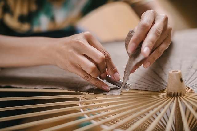 ORGANは、2023年にトラストバンクが休眠預金を活用して実施した「地域特産品及びサービス開発を実施するソーシャルビジネスの形成支援事業」での公募採択を受け、「長良川流域文化の未来を担う<和傘、舞妓>の学校づくり」事業(以下、本事業)を、助成元のトラストバンクの事業伴走支援のもと、2023年7月より開始しました。本事業にて、伝統工芸「岐阜和傘」づくりにおける学校形式での伝統技術継承の仕組みを形成し、今後将来に渡り若者が岐阜和傘づくりを職業としながら継続的に働き続けられるよう、新たな市場・顧客開拓のための地域特産品及びサービスの開発に取り組んでいます。ORGANは後継者育成に取り組む岐阜和傘協会の伴走支援を行っています。