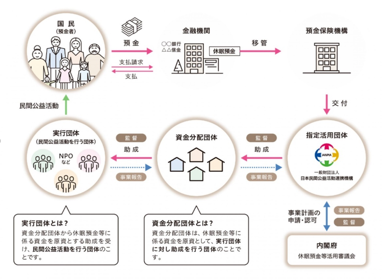 休眠預金等の活用について( https://www.janpia.or.jp/kyumin/ )
