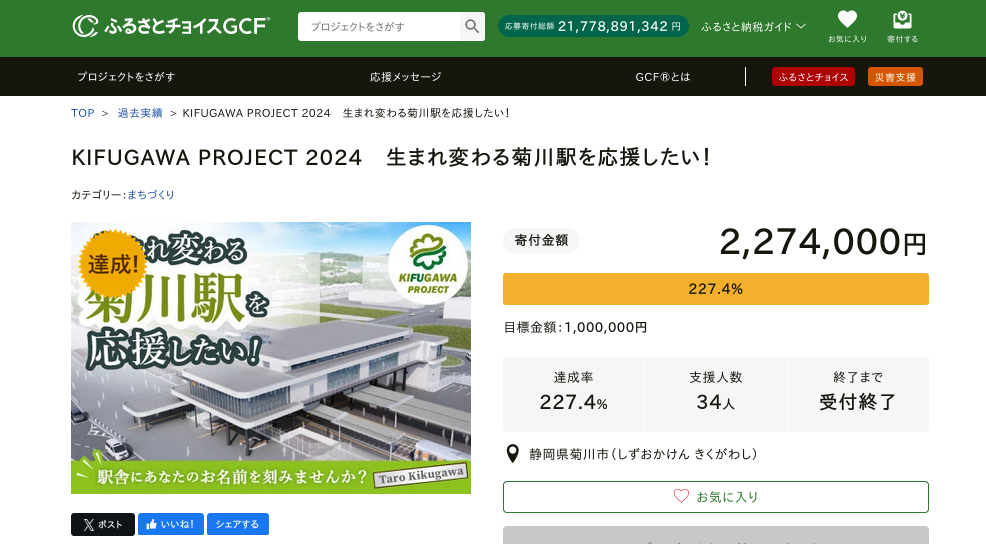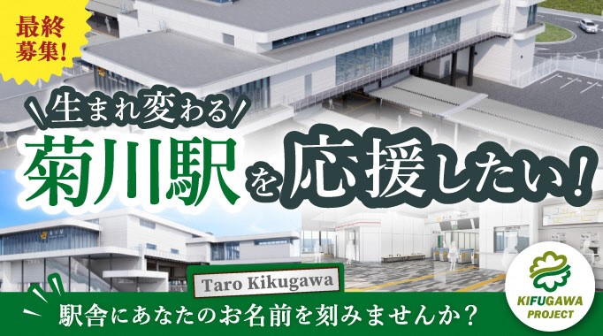 ◆ プロジェクト名: KIFUGAWA PROJECT 2025 最終募集!生まれ変わる菊川駅を応援したい!