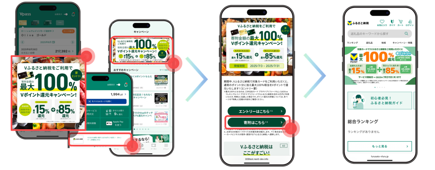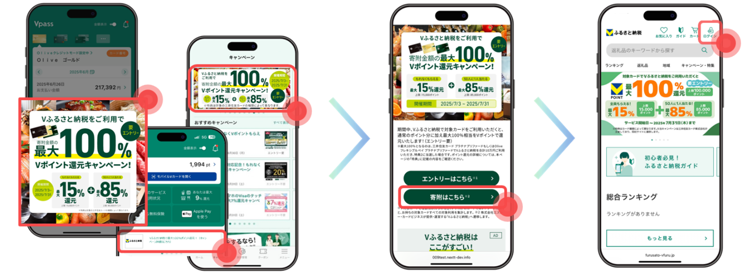 Vpass各種バナーからキャンペーンページを経由し、Vふるさと納税のTOPへ