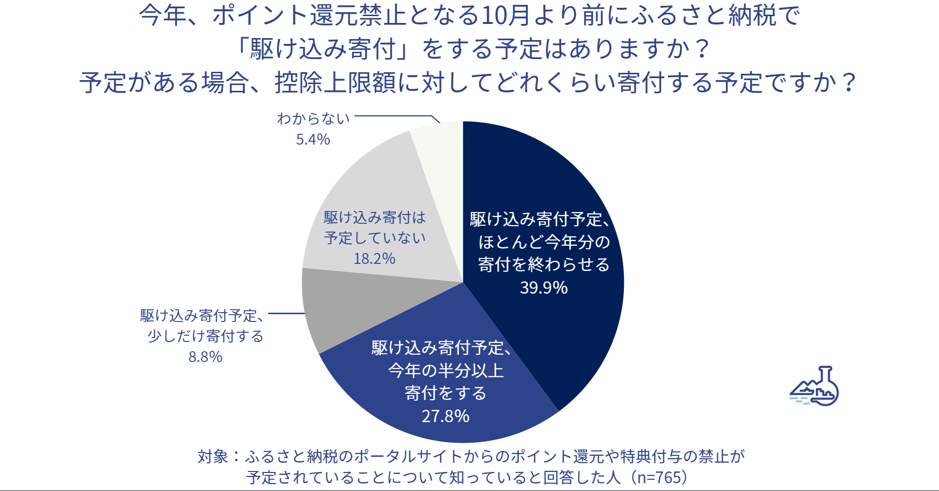 その結果、2025年10月から予定されているポータルサイトによるポイント還元や特典の廃止については、ふるさと納税経験者の7割超が“駆け込み寄付”を予定しており、ルール変更が寄付行動に影響を及ぼしている様子がうかがえます。