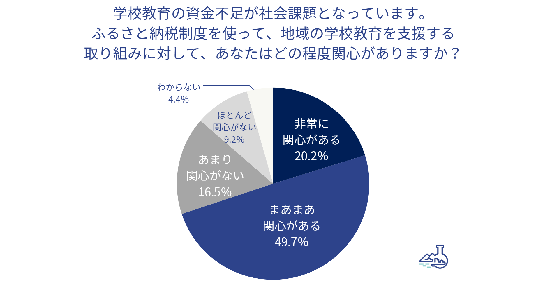 ふるさと納税の使い道として関心が高いテーマは、「農林漁・水産・商工」(29.7%)、「教育・子育て」(27.7%)、「震災復興」(27.4%)の順となり、地域の基盤を支える一次産業や教育分野への関心が高い傾向が見られます。特に、学校教育を支援する取り組みに関心があると答えた人は全体の約7割(69.9%)にのぼり、希望する寄付の使い道としては、「子どもたちの学用品・ICT機器の整備」と「給食・食育関連の支援」がいずれも最多となりました。続いて「部活動・スポーツ活動の支援」も高い関心を集めており、教育現場の多様な課題に対する関心の高さがうかがえます。