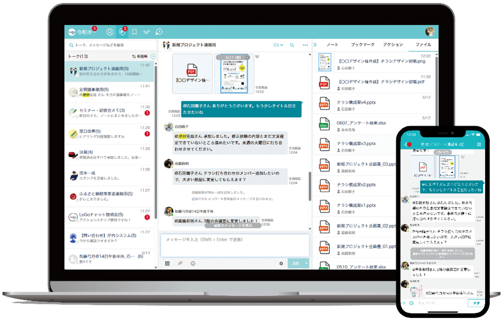 LoGoチャットはLGWANとインターネットの両方で利用できる、自治体および関連団体向けビジネスチャットツールです。2019年11月の正式リリースから5周年を迎え、関連団体を含み1,500以上(注1)の自治体に導入されており、リアルタイムでのコミュニケーションによる業務の生産性向上や意思決定の迅速化、災害時の情報連携のスピード向上などに貢献しています。