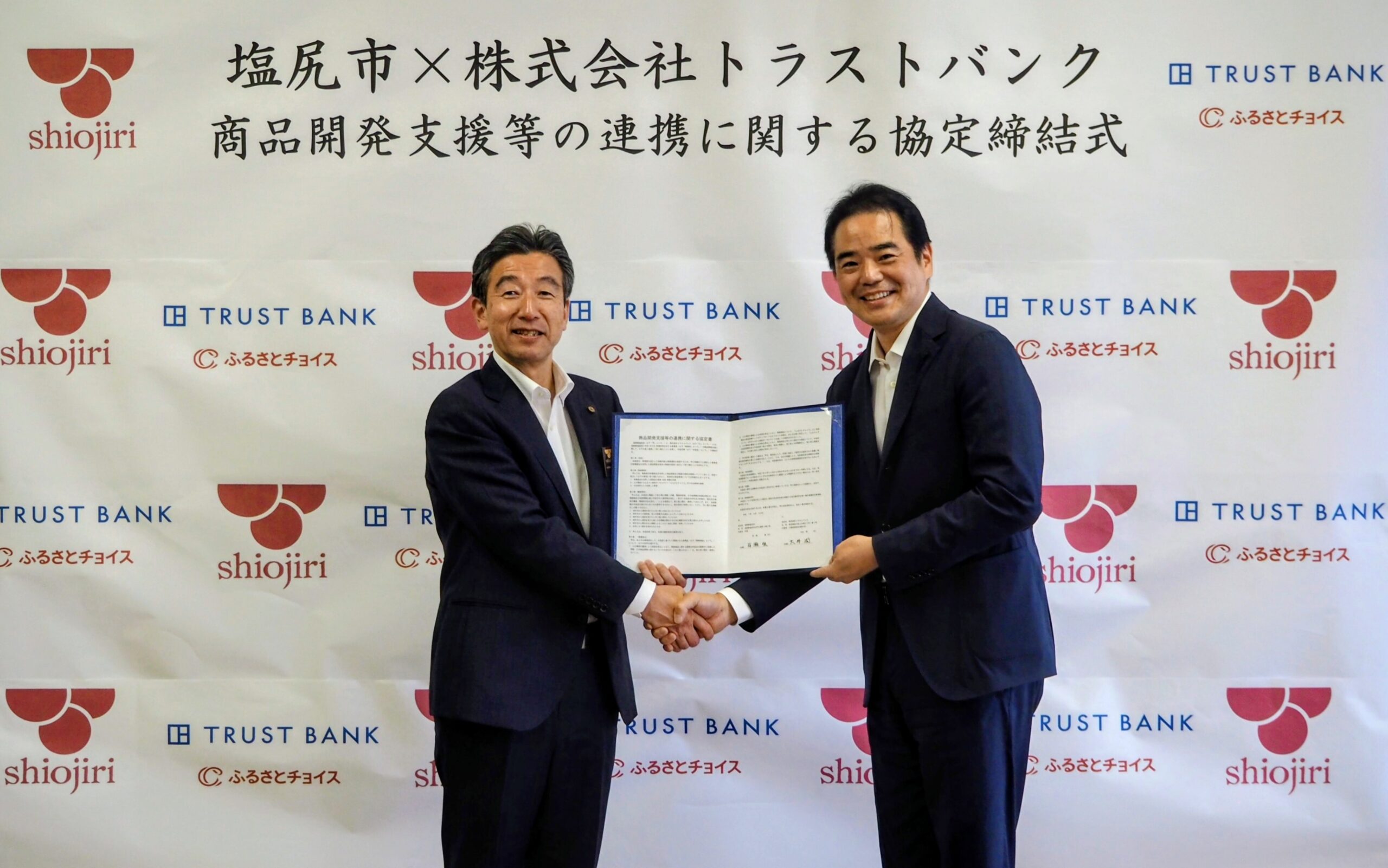 長野県塩尻市(市長:百瀬敬、以下「塩尻市」)と国内最大級のふるさと納税総合サイト「ふるさとチョイス」を企画・運営する株式会社トラストバンク(本社:東京都品川区、代表取締役社長兼CEO:大井潤、以下「トラストバンク」)は、本日9月30日、「商品開発支援等の連携に関する協定」を締結したことをお知らせします。なお、トラストバンクが長野県内の自治体と協定を結ぶのは今回が初めてです。