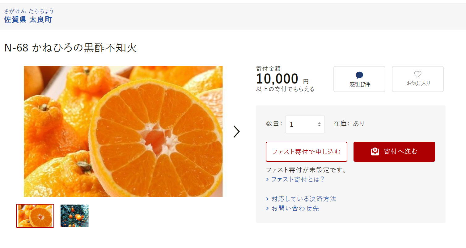 冬によく選んで寄付するのは佐賀県太良町の「黒酢みかん」(佐賀県太良町)です。最近の果物は甘くしているものが多いですが、「黒酢みかん」は甘すぎず、適度な酸味もあって美味しいですよ。あとは群馬県片品村のスキー場リフト券&宿泊券を選び、昨年末にスノーボードをしに行きました!