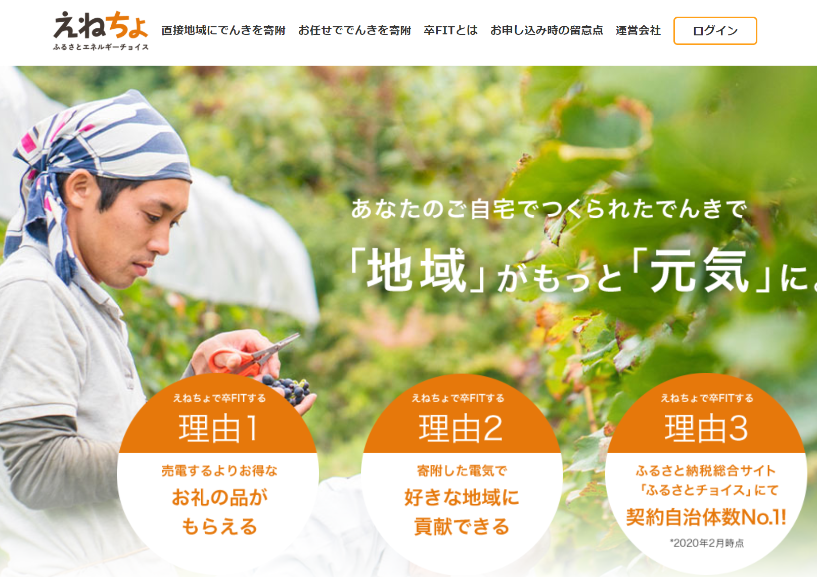 3つ目は「プラットフォーム事業」です。卒FIT電力を地域に寄付できるサイト「えねちょ」は、新エネルギー財団が主催する「令和2年度新エネ大賞」で「資源エネルギー庁長官賞」を受賞しました。