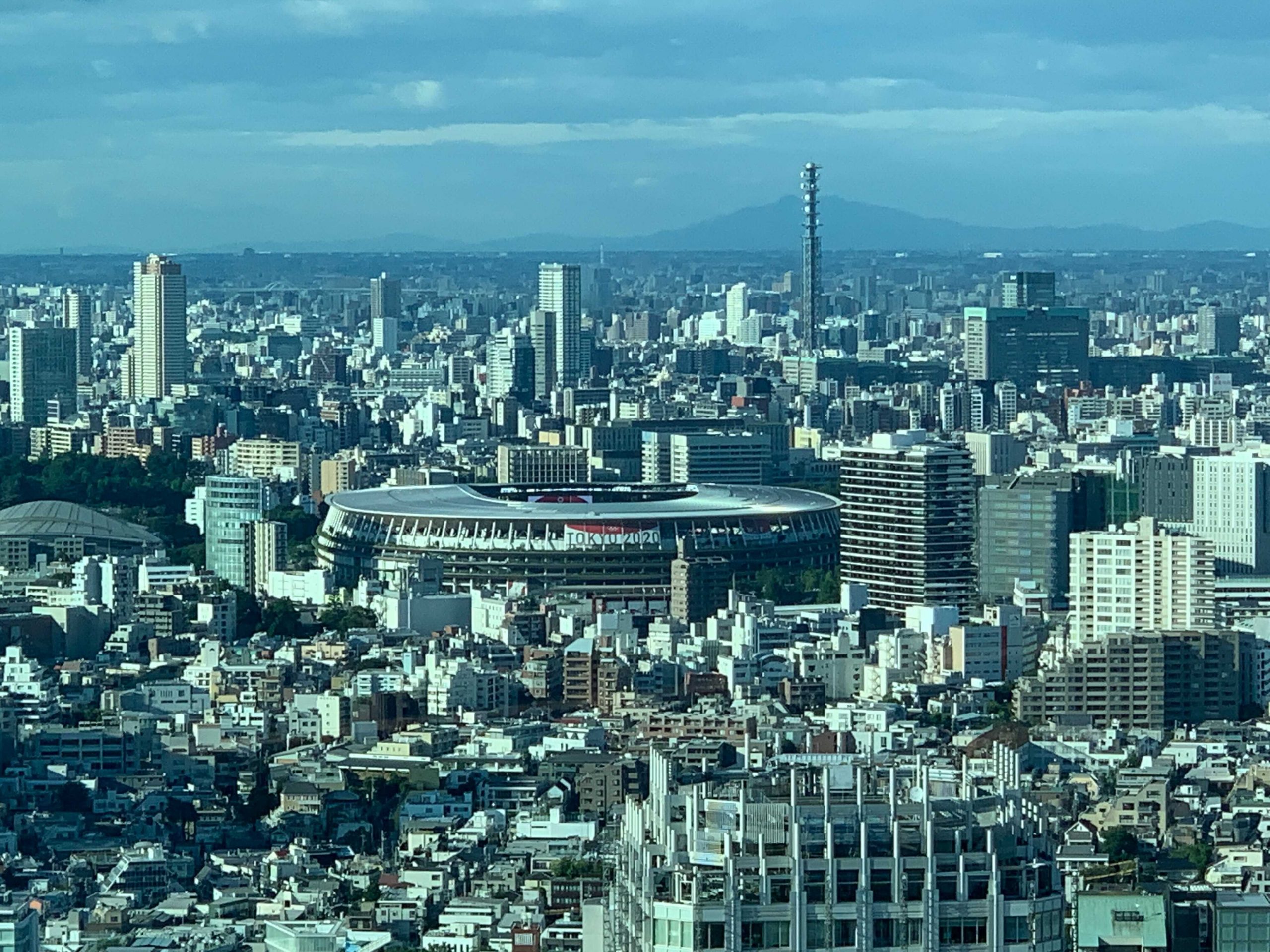 (WeWorkオフィスからの景色。オリンピックが開催されている国立競技場が見えます)