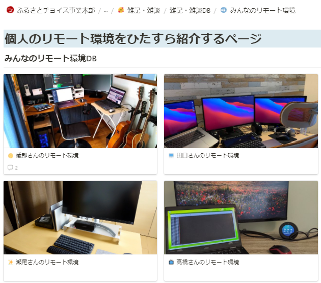 実は僕、リモート環境になってから社員が自宅の職場を見せあうページを見たんです。「こんな環境で仕事をしている」という様子に、みんな創意工夫しているなと思いました。