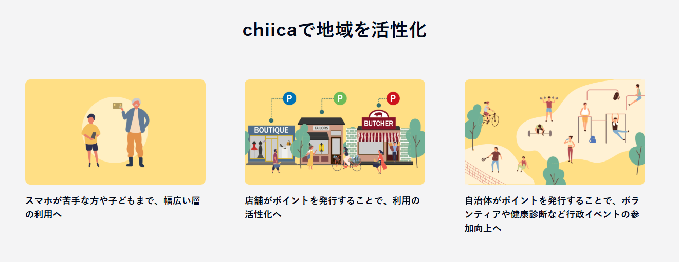 「地域通貨と一言で言っても、本当に様々です。商店街だけで使えるポイントも、イベント参加でもらえるコミュニティポイントも、すべて地域通貨。では、その中で『chiica』の圧倒的な強みは何か。それは、費用対効果ならぬ、『費用対“相乗”効果』が見込めることです。」